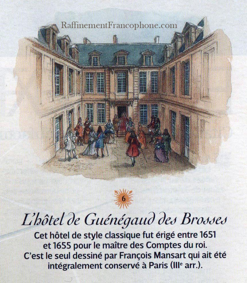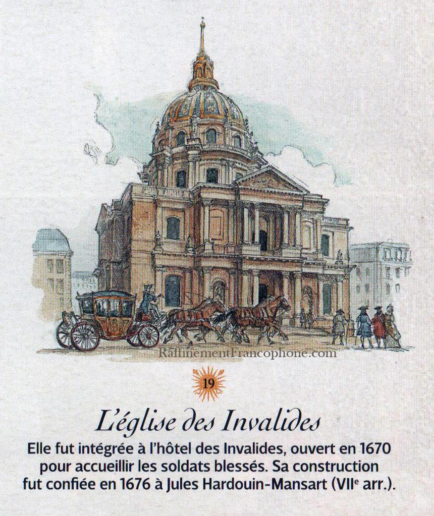 La maison royale de Saint-Cyr, La Folie Rambouillet, La basilique Notre-Dame-des-Victoires, L’étang de la Martinière, La grotte de Thétis, l’Hôtel de Guénégaud des Brosses, L’observatoire de Paris, Le collège des Quatres Nations, La Cour carrée du Louvre, Le pont Royal, Le palais des Tuileries, La chapelle royale de Versailles, La porte Saint-Martin, La Salpêtrière, Le théâtre du Palais-Royal, La place Vendôme, L’amphithéâtre de chirurgie, La prison Sainte-Pélagie, L’église des Invalides, La place des Victoires, La château de Marly, La manufacture des Gobelins, L’hôtel Salé, La porte Saint-Denis, L’hôpital des Enfants trouvés, etc.